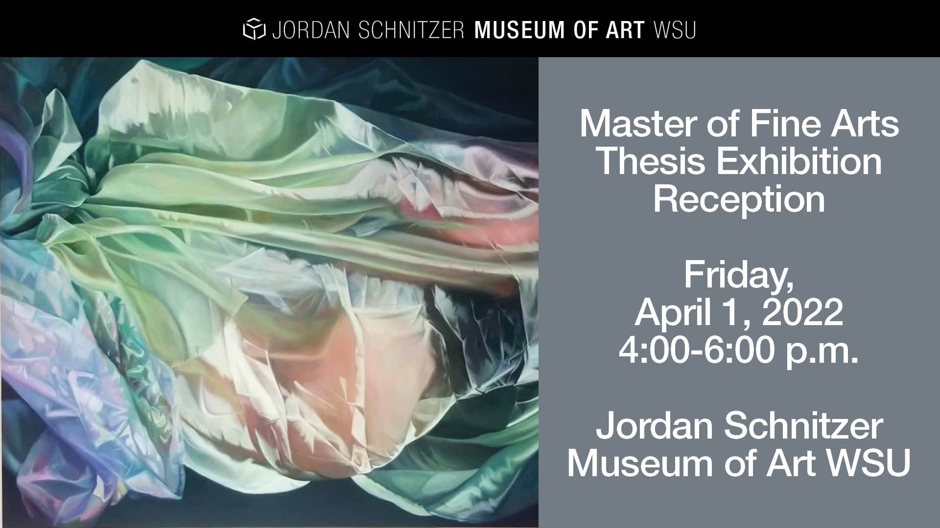 Join us at the Jordan Schnitzer Museum of Art WSU on Friday, April 1 from 4:00-6:00 p.m. for the Master of Fine Arts Thesis Reception, organized by Ryan Hardesty, Executive Director and Curator of Exhibitions & Collections. Hardesty says: “This exhibit provides a wide range of styles and stimulating experiences for faculty, students and local museum constituents. The world-class faculty at WSU encourage the MFA candidates to become more assured and articulate in their convictions. We confidently present this year’s graduate thesis work in hopes that undergraduate students, first year graduate students and anyone willing to be moved by art while spending time at WSU will find it a fun and stimulating experience.” This annual showcase represents the culmination of two or more years work by the Master of Fine Arts graduate candidates.
